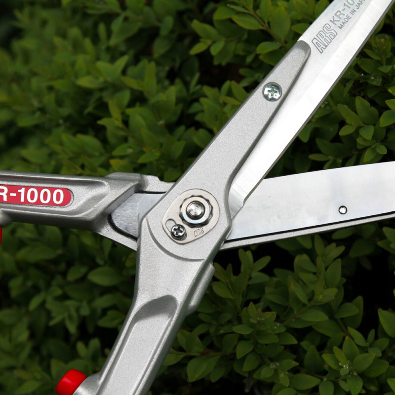A noter qu’il existe également un modèle plus petit et encore plus léger, la cisaille ARS K-800. Elle est destinée à travailler des sujets plus complexes comme les buis taillés en spirale, les topiaires en forme d’animaux et autres reproductions.