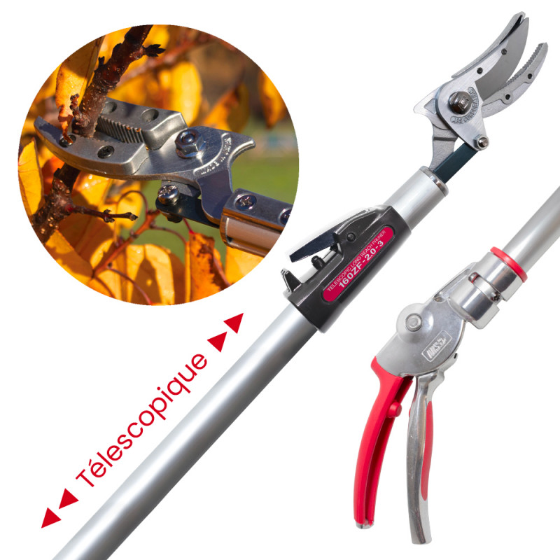 Le sécateur longue portée ARS160ZF-2.0-3 est un outil télescopique haut de gamme, spécialement conçu pour les travaux de taille à longue portée. Son manche en aluminium, à la fois léger et robuste, est réglable de 126 cm à 201 cm, offrant une utilisation ergonomique et polyvalente, sans nécessiter marchepied ni échelle.