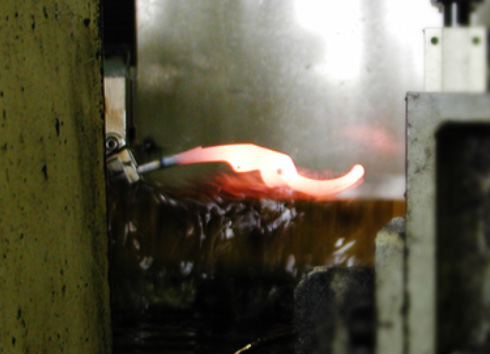 La « ténacité » et la « dureté » sont deux facteurs clés pour garantir le coupant d’un outil. ARS est parvenu à convertir la technique d’un maître artisan expérimenté sous une forme numérique. De là nous passons à un traitement thermique de manière à produire un acier trempé de grande nuance.